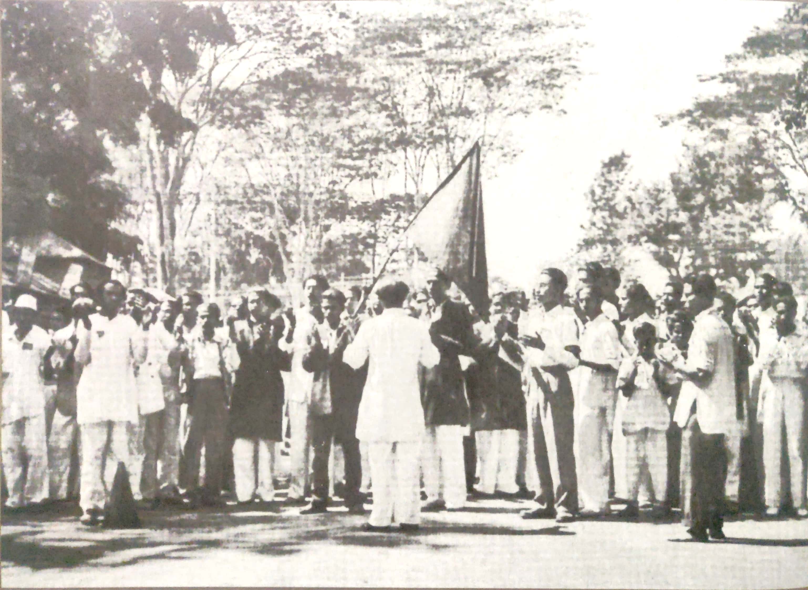 Sheikh Mujibur Rahman and his fellow political leaders offering prayers on the street in memory of the Language Movement martyrs (February 21, 1953).